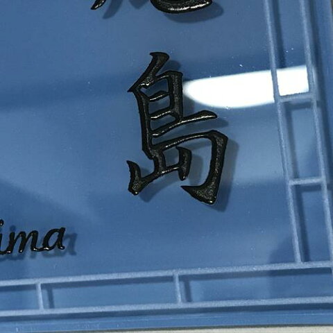 (削りのみの部分はすりガラス状となります) タイル底面はカラフルな下地色で、ガラス表面に彫刻した文字の影が投影されます。
