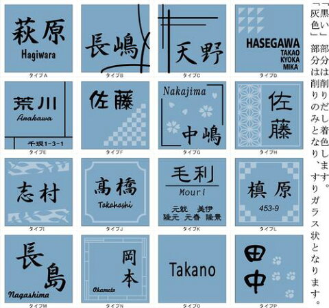 100角ガラスタイル「ライトブルー」を使ったデザインタイル表札 サイズ :97mm×97mm×4mm 材質 :ガラスタイル 加工方法 :彫刻(サンドブラストエッチング) 文字等着色:白、黒、茶、ゴールド、シルバー ベースデザインをお選びいただき、その後メールで微修正のやり取りをさせて頂きます 発送はポスト投函型のメール便となります。